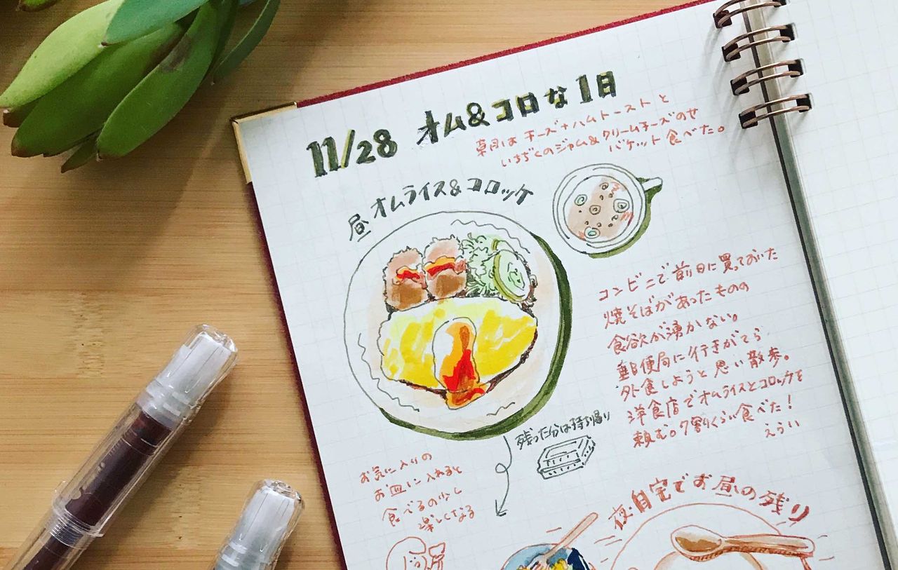 ↑こんな絵日記を描いていきたいと思います。これは11/28に食べたもの。