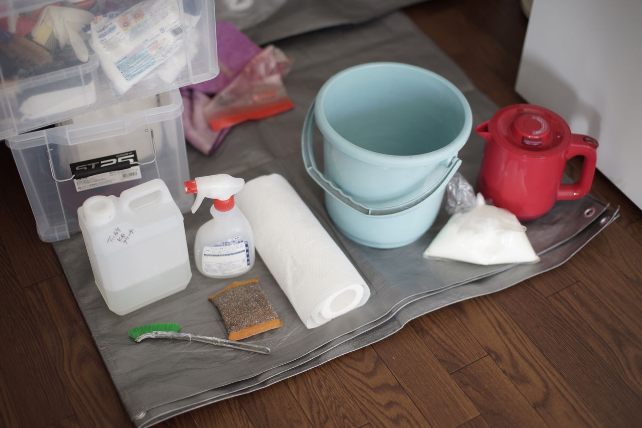高圧洗浄機や鏡を研磨する機械、トイレ掃除に用いる絶妙な荒さのやすりや、それぞれの汚れの性質に合わせた洗剤、それらの物品を常時所持するのはやはり難しいなと感じます。場所をとるし、高価だし、洗剤は家庭用のものではないから入手が難しいです。