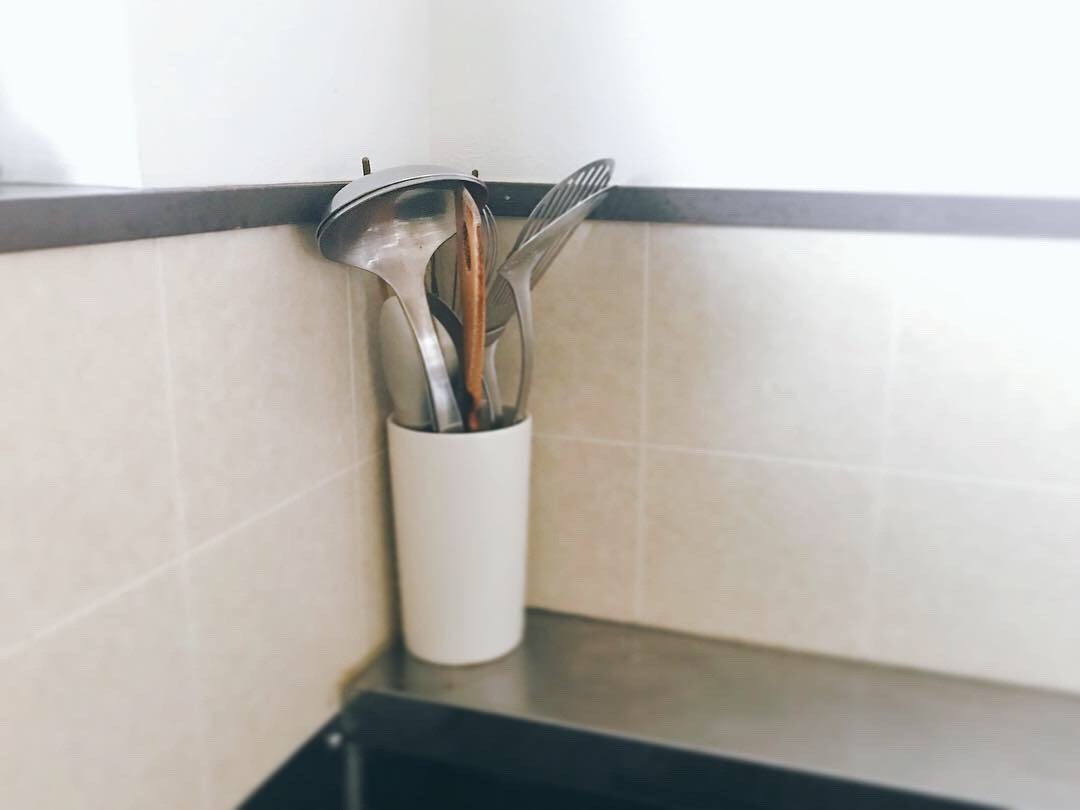 泡立て器と菜箸と木ベラは実家から持ってきたものです。8年くらい使ってますね。こうやって思うと、一人暮らしする時に一時的なものだと思ってなんとなく持ってきたものが何年も暮らしを支えるんだなと気づかされました。