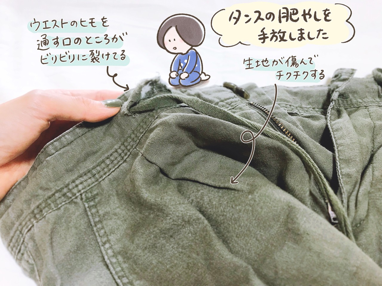 服を手放す時、肌着以外なら大抵買取に出しますが、これは買い取ってもらえないだろうなという傷み具合だったので手放そうと思います。