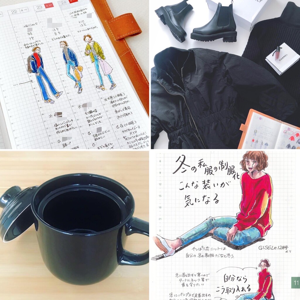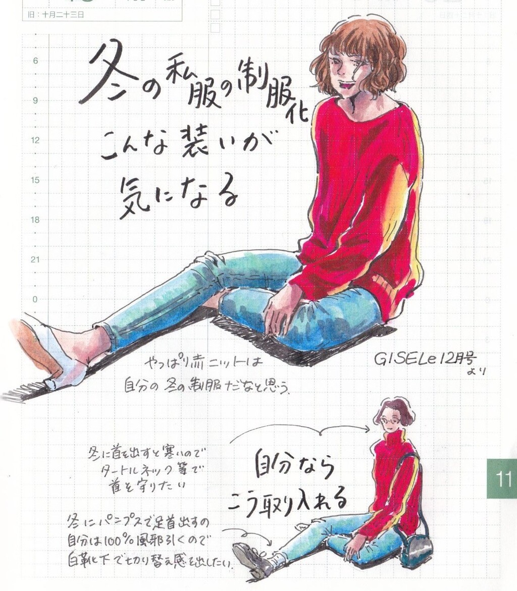 冬の制服を決めるにあたって、気になる装いを雑誌を見ながらストックしていっていました。