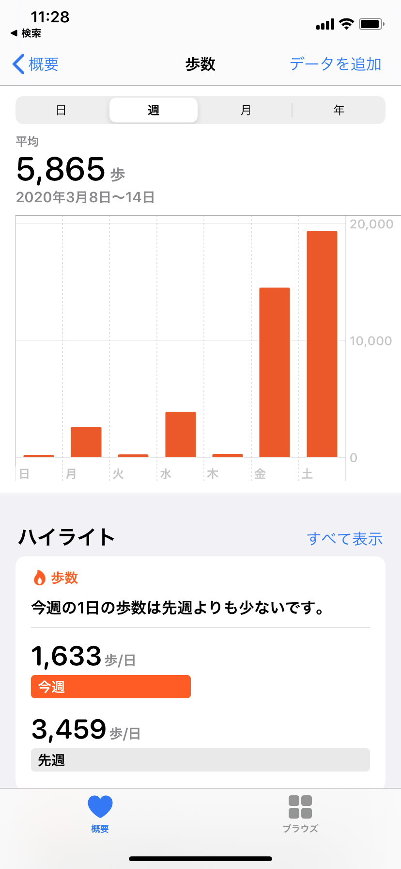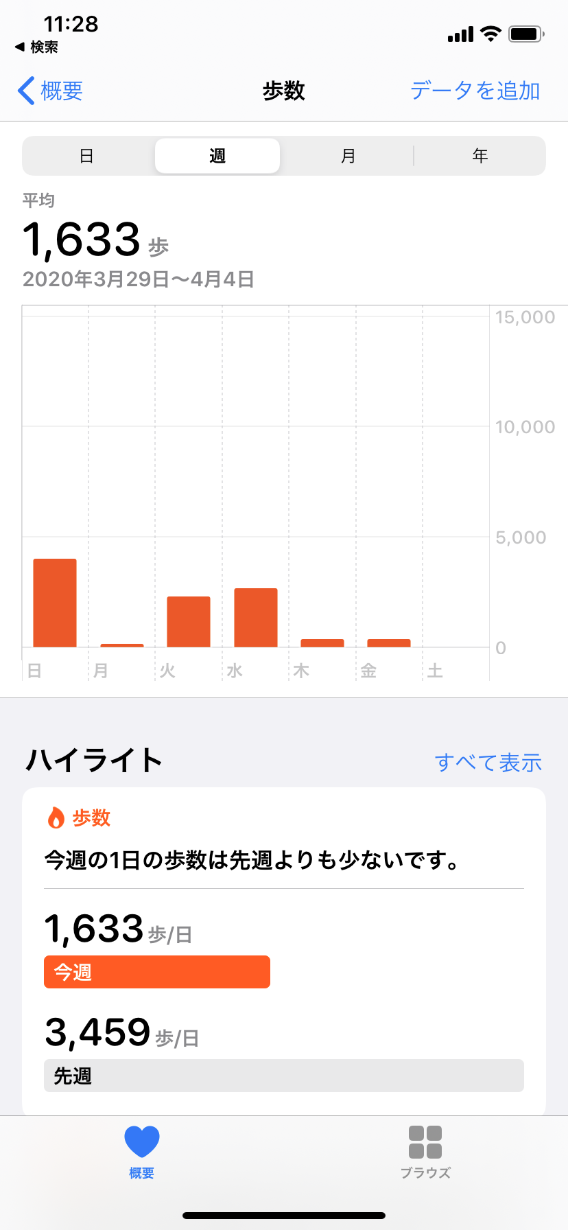 自宅で家事などをするときも近所のスーパーに行くときも基本的にiPhoneは持ち歩いているので、本当に驚くほど歩数が減っていることがわかります。