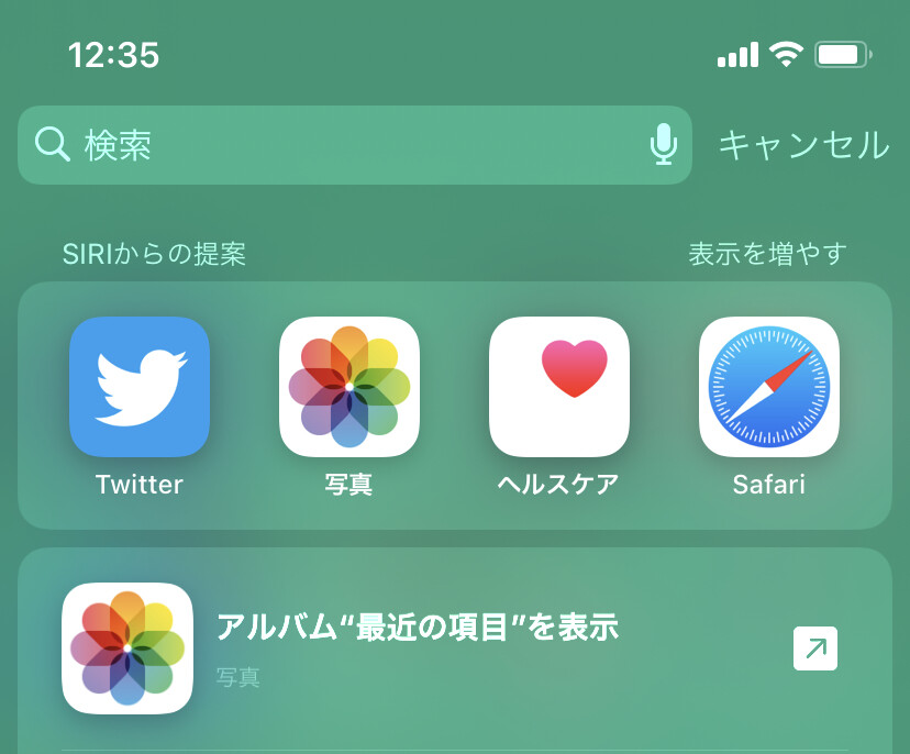 iPhoneのヘルスケアには歩数計がついています。ホーム画面で上からひゅいっと下げると検索欄が出てきます。