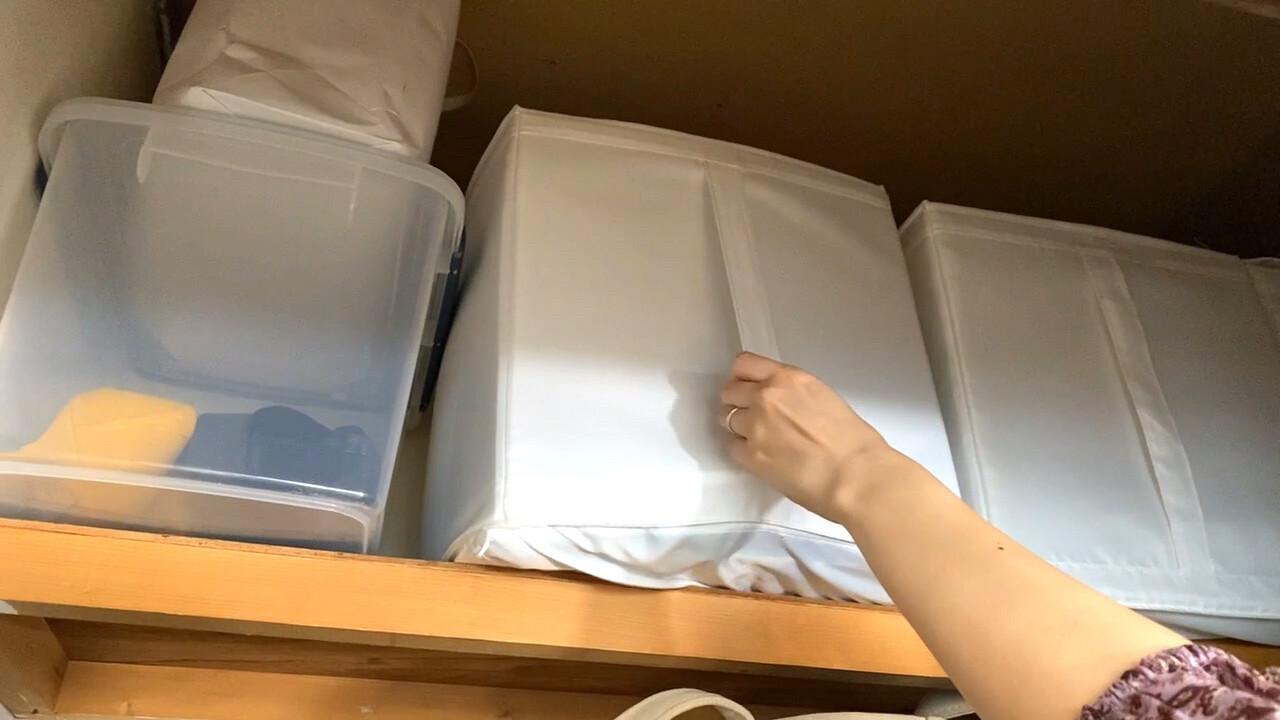 上段の季節外の服を入れるものとして、IKEAの不織布のケースを使っています。