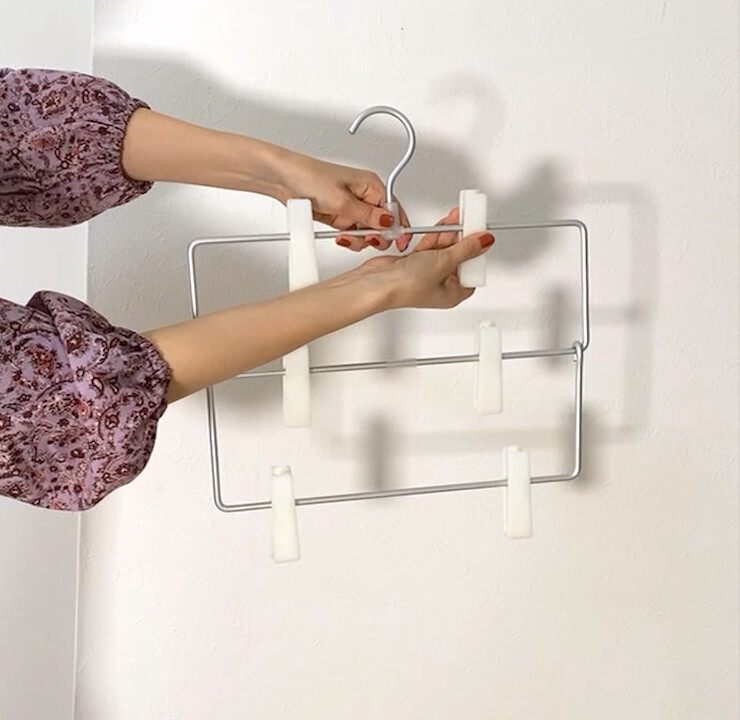 無印良品の「アルミハンガー・パンツ/スカート用3段」を使っています。