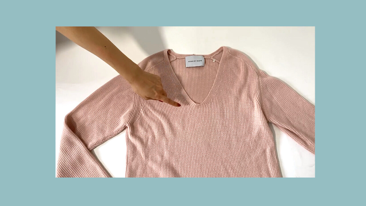 ピンクのニットは、Vネックが深すぎて、胸板の薄さが際立って不健康な感じに見えてしまうのが気になっていました。