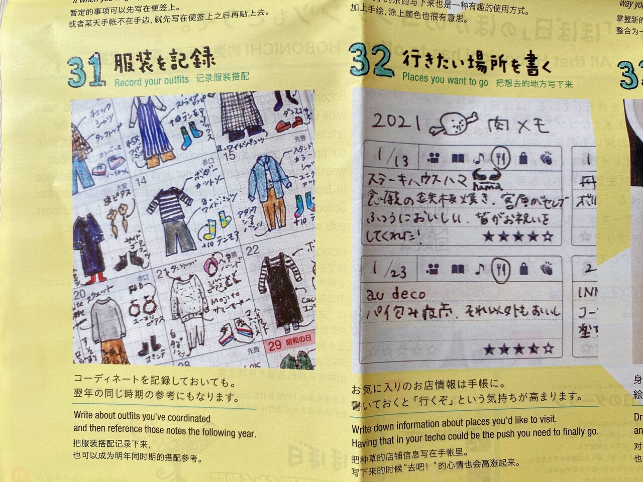 例えば、マンスリーページに服装を記録する。