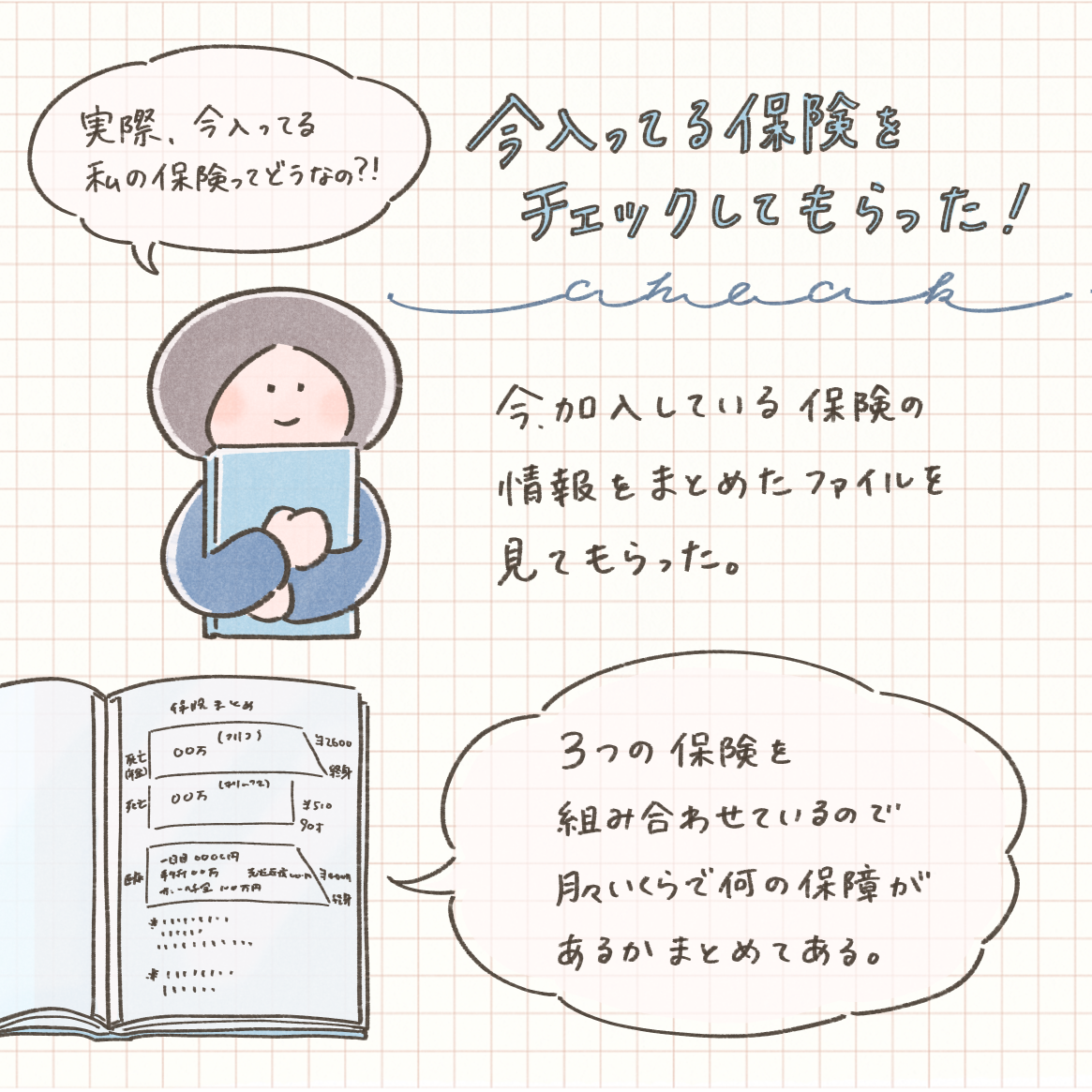 わたしは、7年前から入っている保険の情報をまとめたファイルを持って行って、それを見てもらいました。