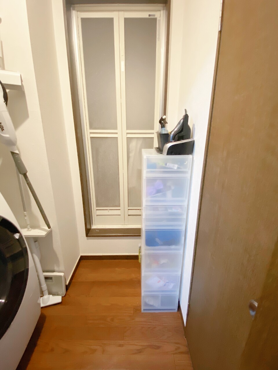 無印の収納ケースを置いているのは、脱衣所横と玄関。