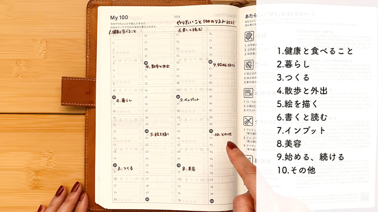 毎年欠かさずやりたいこと100のリストをつくる自分としては、とてもありがたいです。