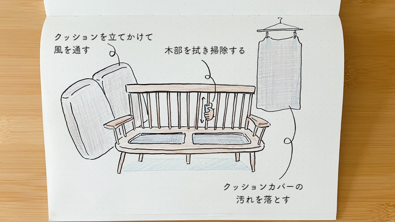例えばソファを一台持っていると、定期的にマットレスに風を通して、木部のほこりを拭き掃除して、カバーを洗うという掃除とメンテナンスが必要です。