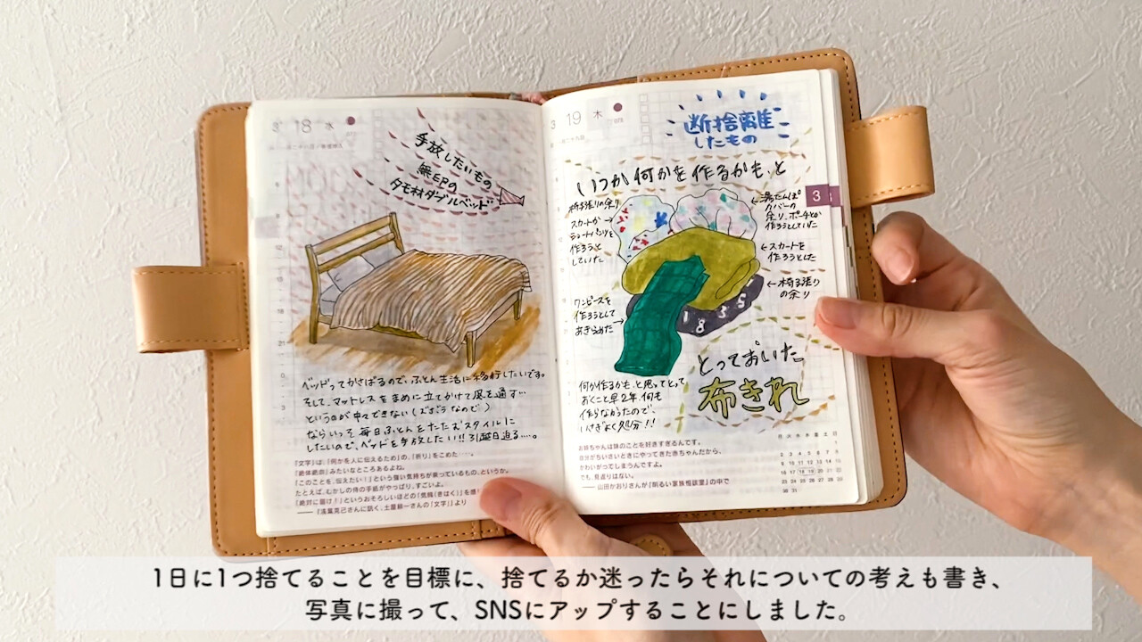 1日に1つものを捨てることを目標に、他にも捨てるかどうか迷うものがあればそれについての考えも書いて、それを写真に撮って、SNSにアップすることにしました。