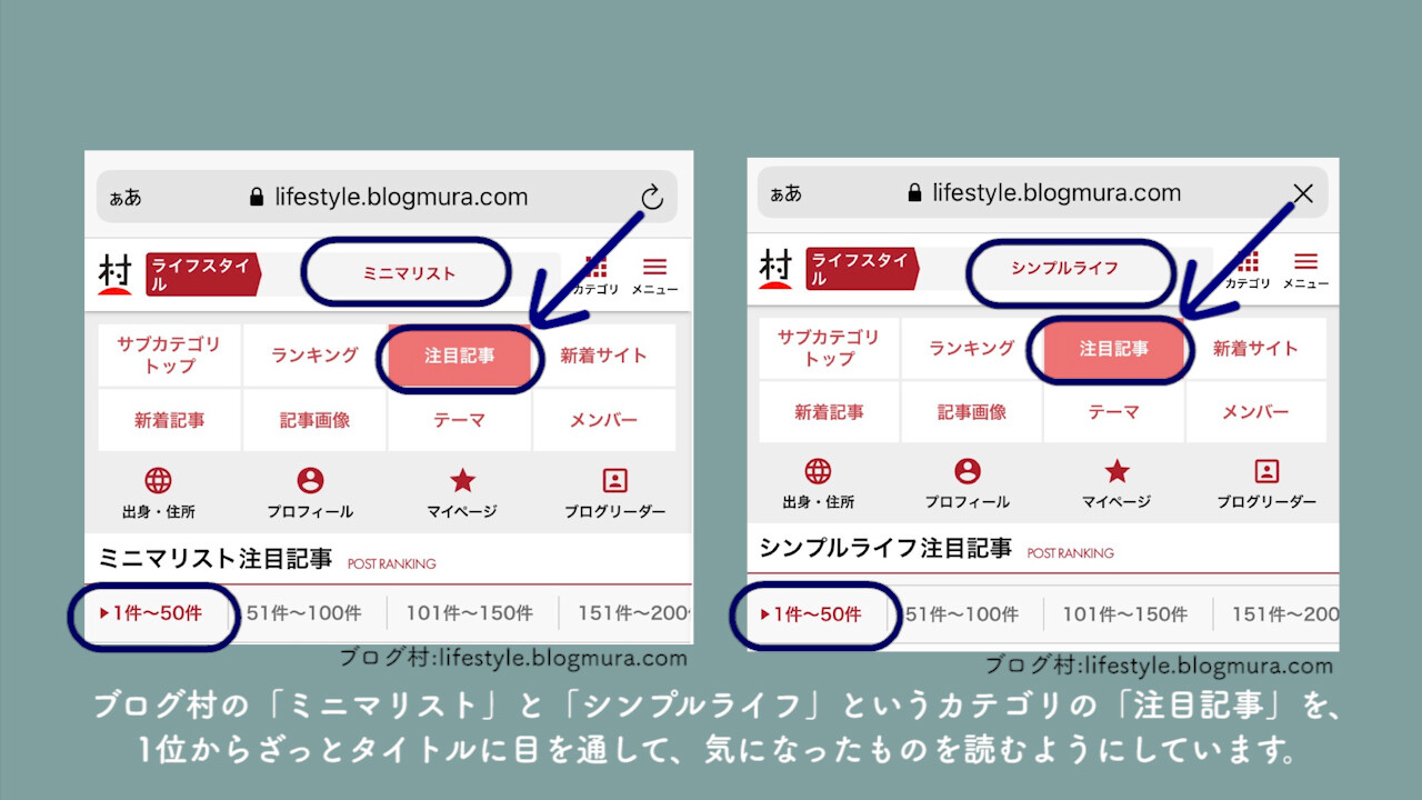 具体的には、ブログ村の「ミニマリスト」と「シンプルライフ」というカテゴリの「注目記事」を、