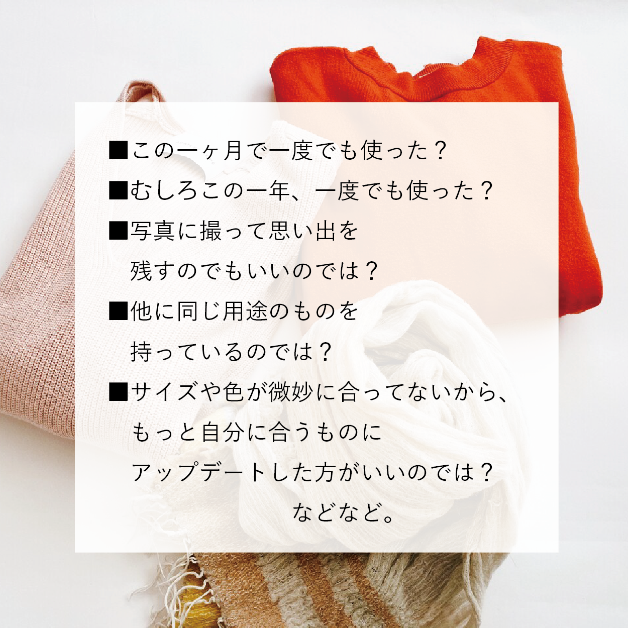 「この一年使ってないならきっとこの先一年も使わないだろう。だから手放そう」