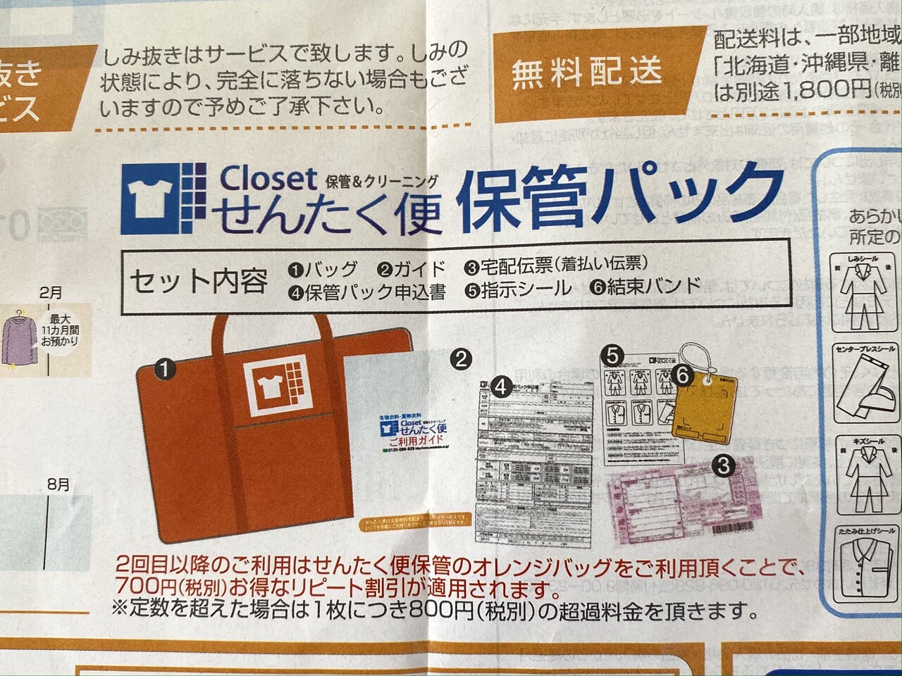 この宅配クリーニングは昨年も申し込んだので、今年はリピートキットを使えました。