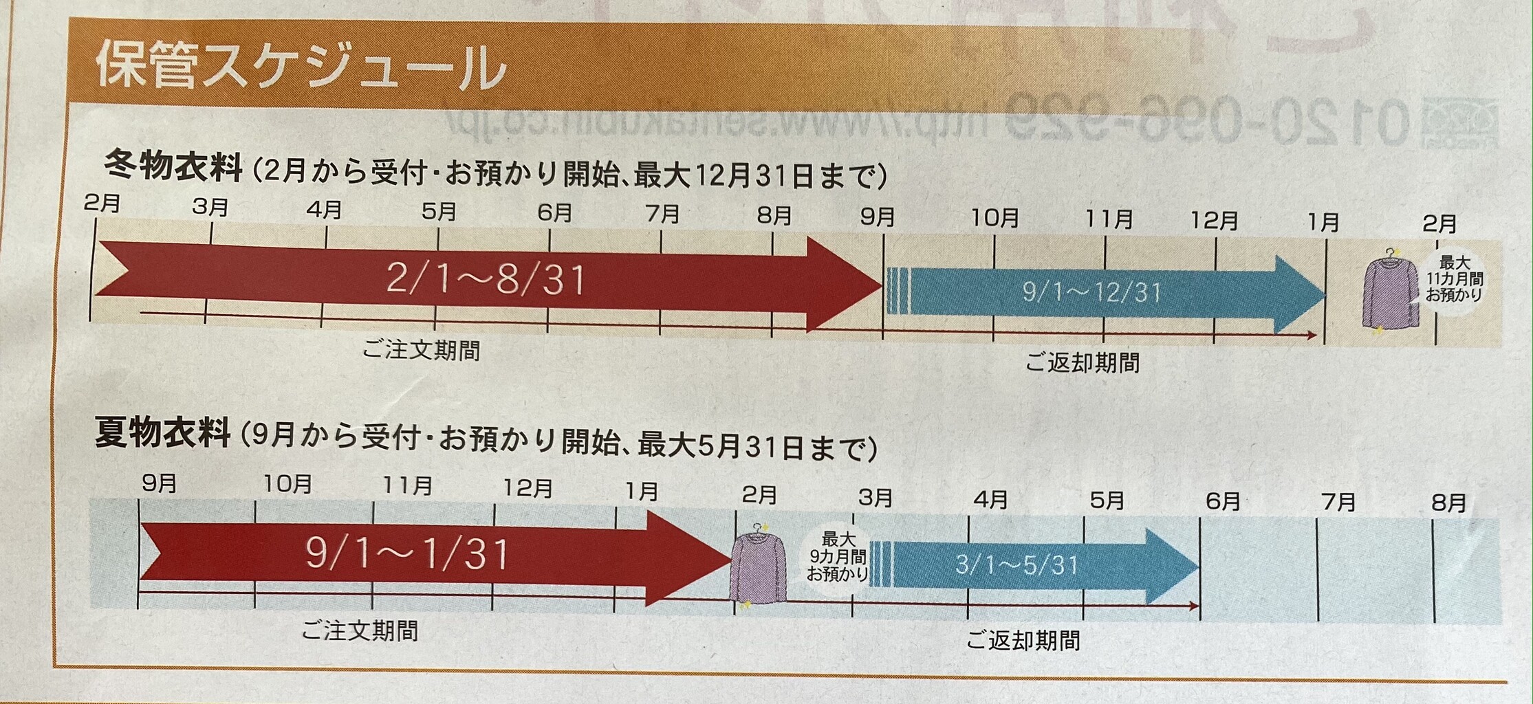 冬物だと、2/1〜8/31まで注文できて、
