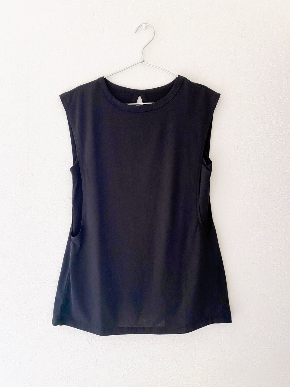 でもタンクトップ一枚で出かけるのと違って肩や腕が丸出しにならないから、夏も上品さを担保しつつ涼しさを得られる。