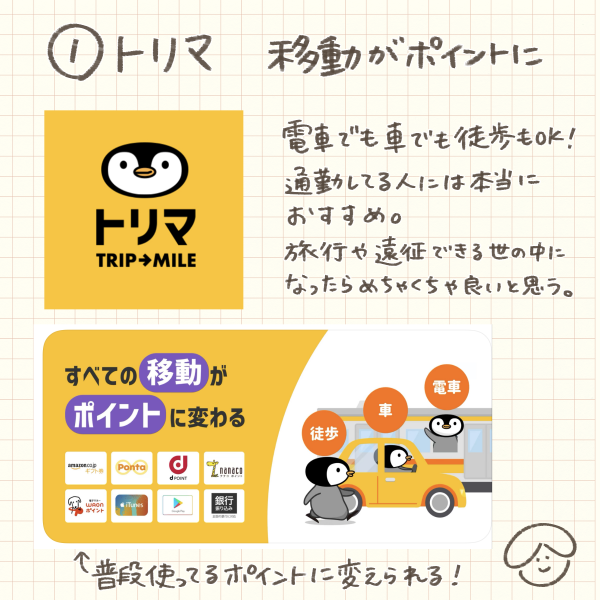 1.移動するだけでポイントが貯まる「トリマ」
