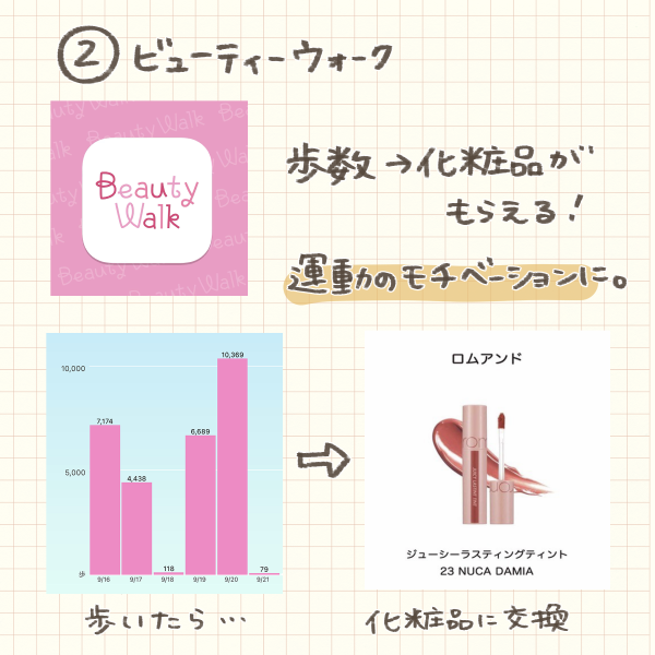 2.歩数を貯めて化粧品に交換「ビューティウォーク」