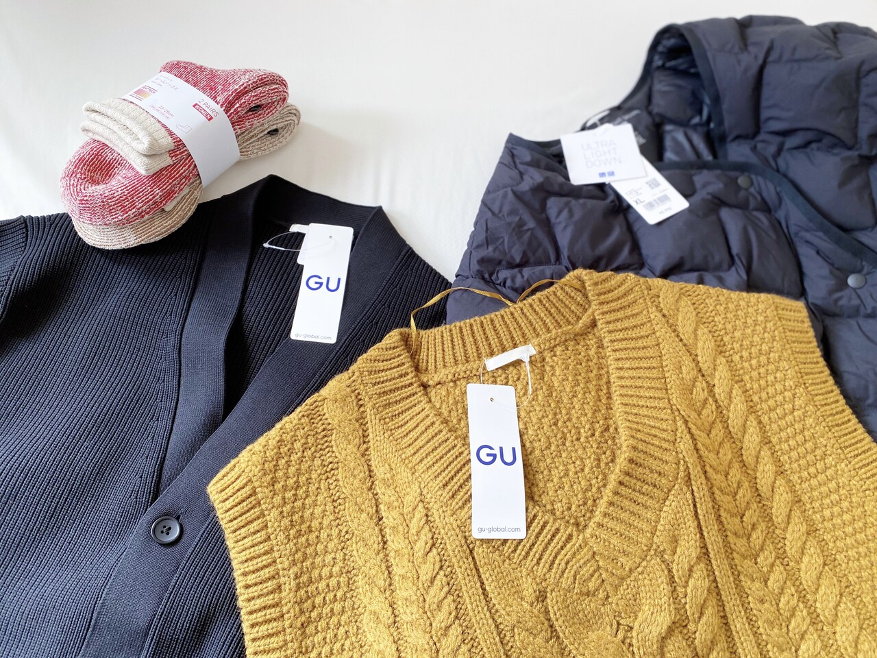 ユニクロでウルトラライトダウンを、GUでカーディガンを買いました。