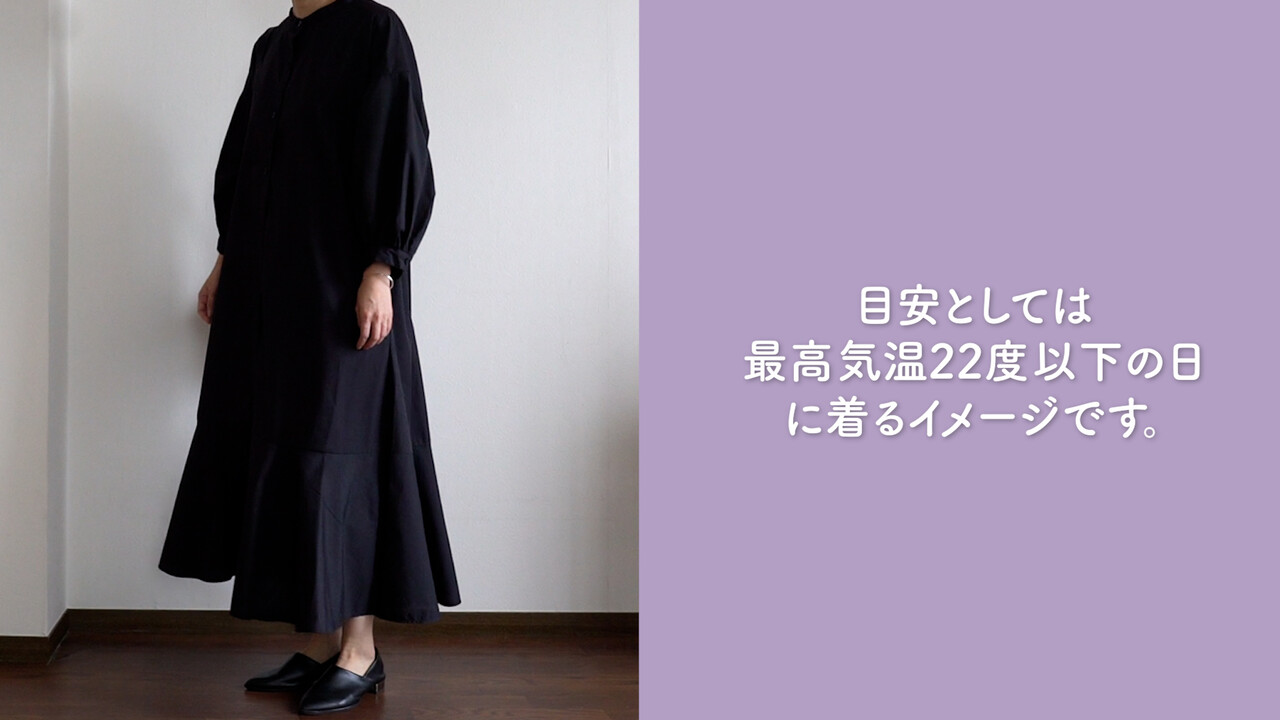目安としては最高気温22度以下の日に着るイメージです。 ちなみに最高気温25度の晴れた日に着たら暑かったです。