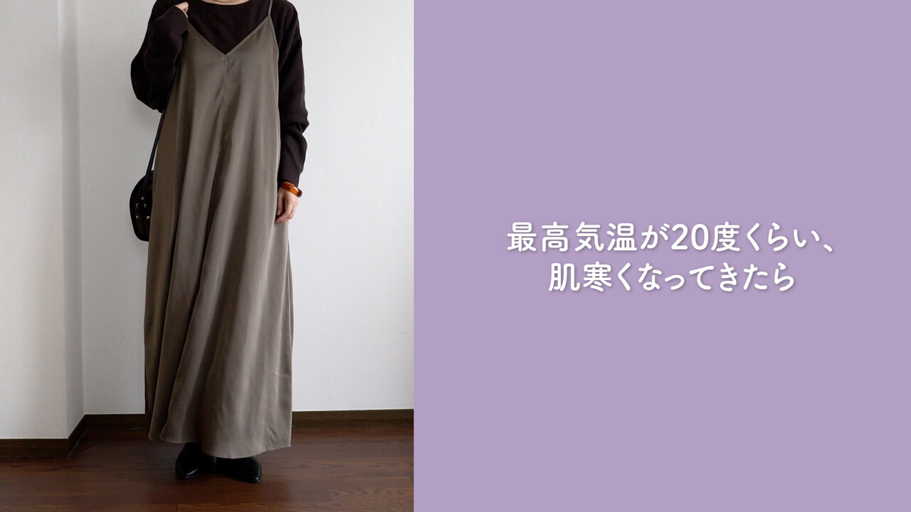 まず、こちらのキャミワンピースは中に入れるもので温度調節ができるので、まだまだ暑い9月上旬から寒くなってきた10月まで、ずっと通しで使えて本当に便利でした。