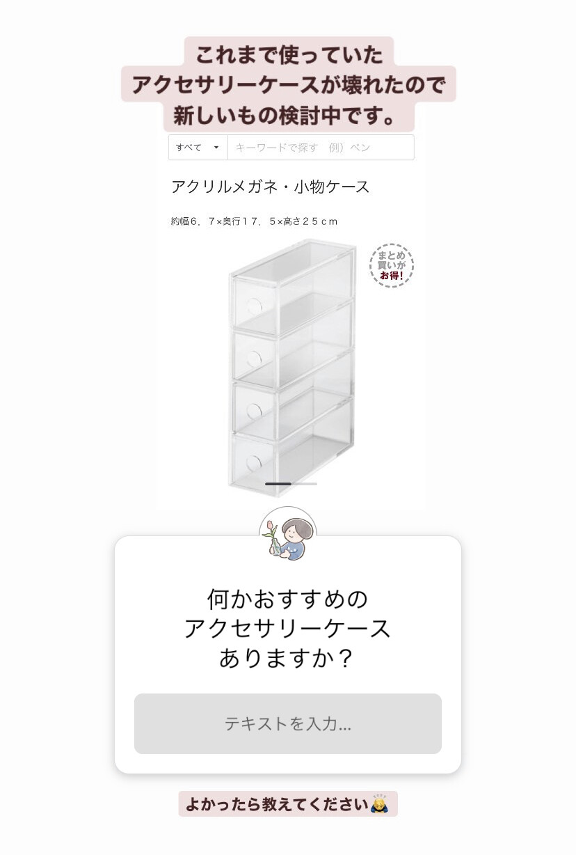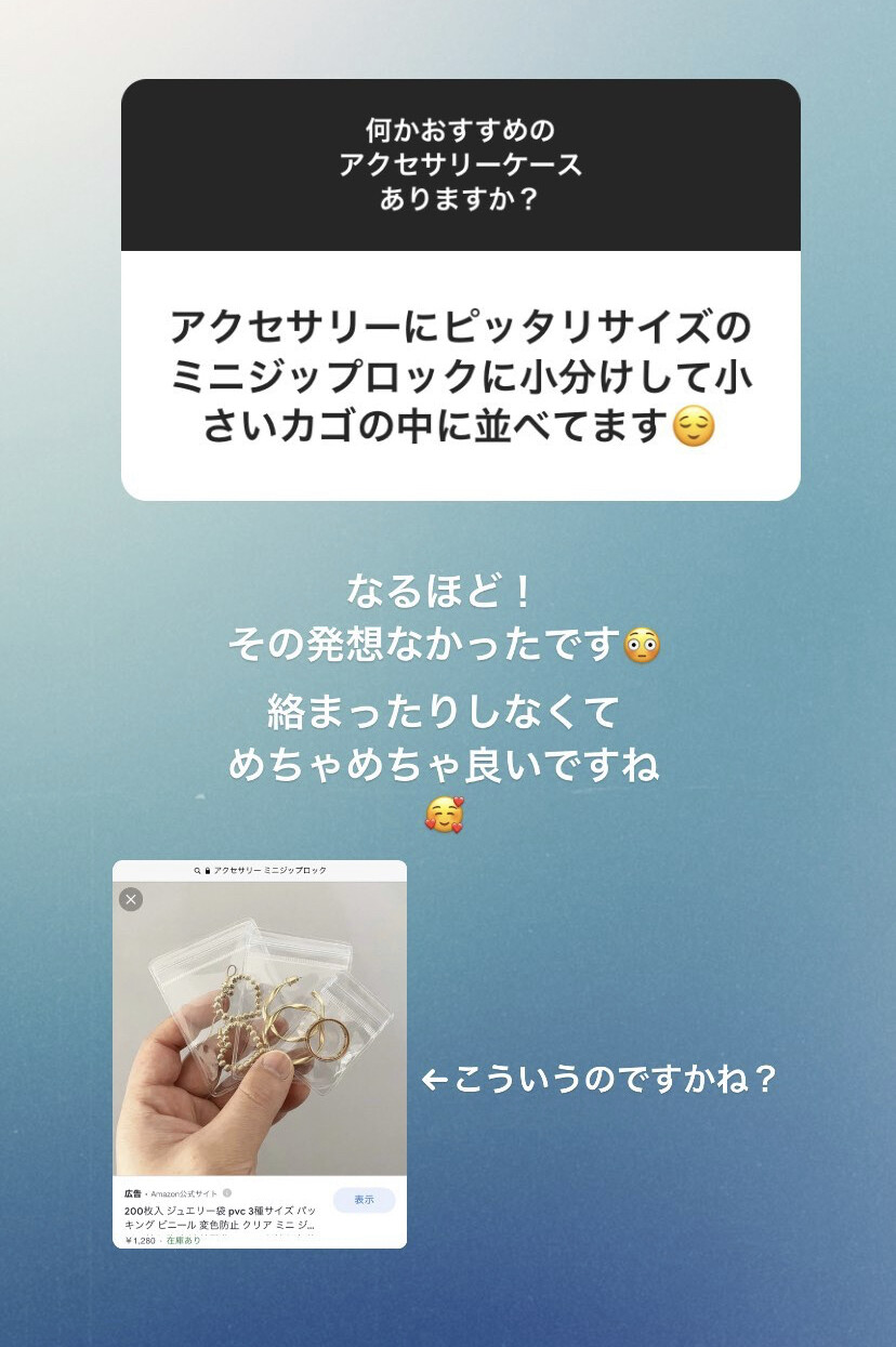 そう思ってインスタでおすすめのアクセサリーケースがないか質問ストーリーをアップしたところ、