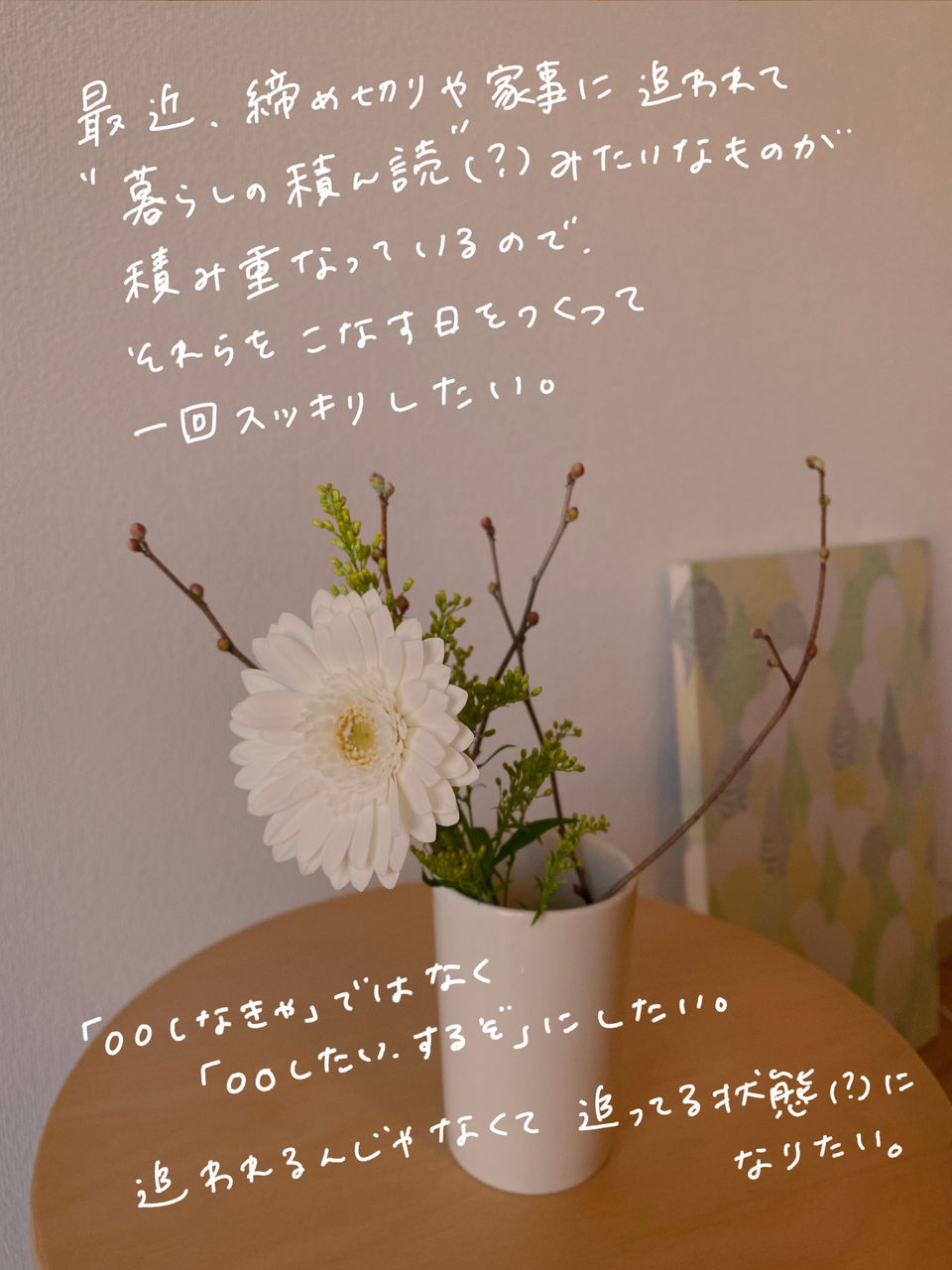 最近、仕事の締め切りや家事や趣味の「〇〇しなきゃ」な事柄に追われていて、