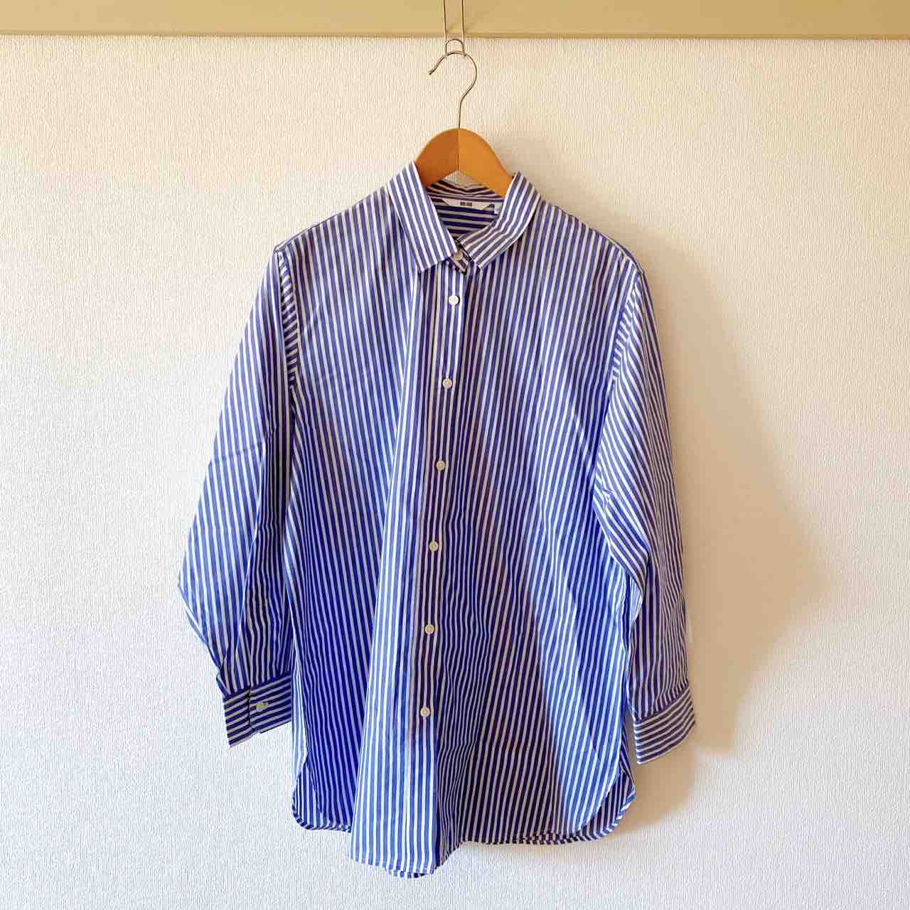 UNIQLOのブルーのストライプシャツ。