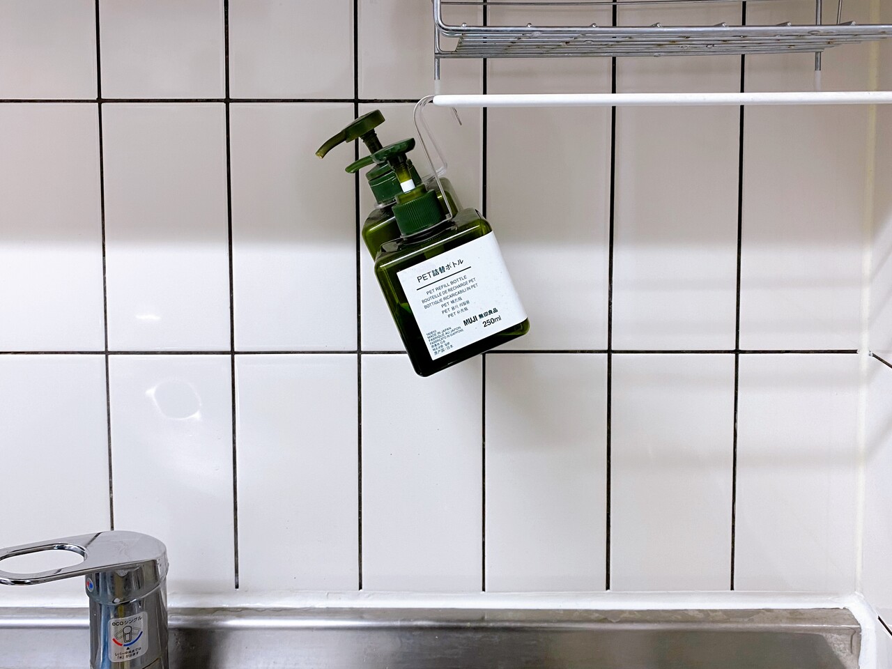 無印の大きい方のボトルにはプラのホルダーを使っています。
