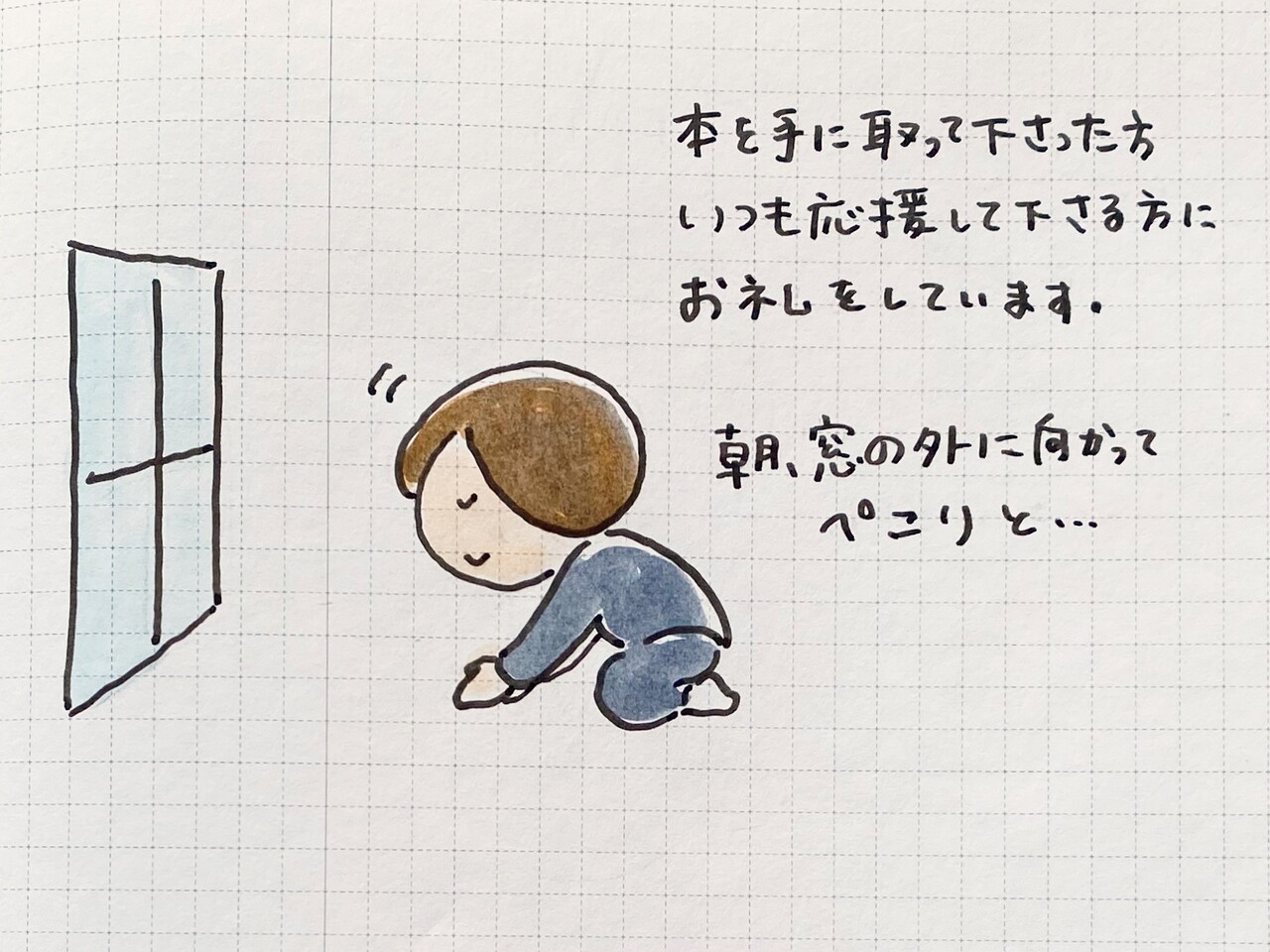 本をお手にとってくださった方へ「ありがとうございます」とお辞儀してお礼しています…!