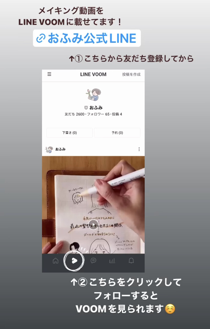 手帳のメイキング動画をLINE VOOMにアップしています。