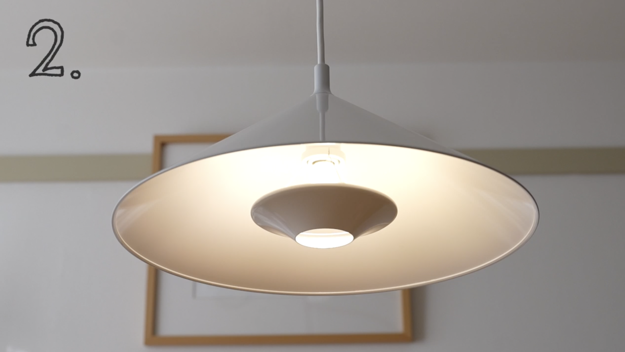 中に小さなシェードがあり、間接照明のように光が回ってやさしく降りてくるのが気に入っています。
