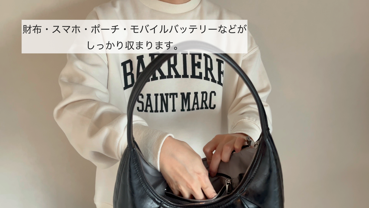 財布・スマホ・ポーチ・モバイルバッテリーなどがしっかり収まります。
