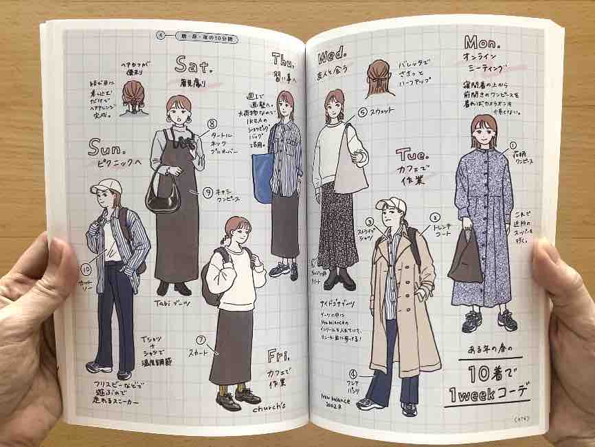 ↑少ない服でおしゃれを楽しむ、私服の制服化についても描いてます。