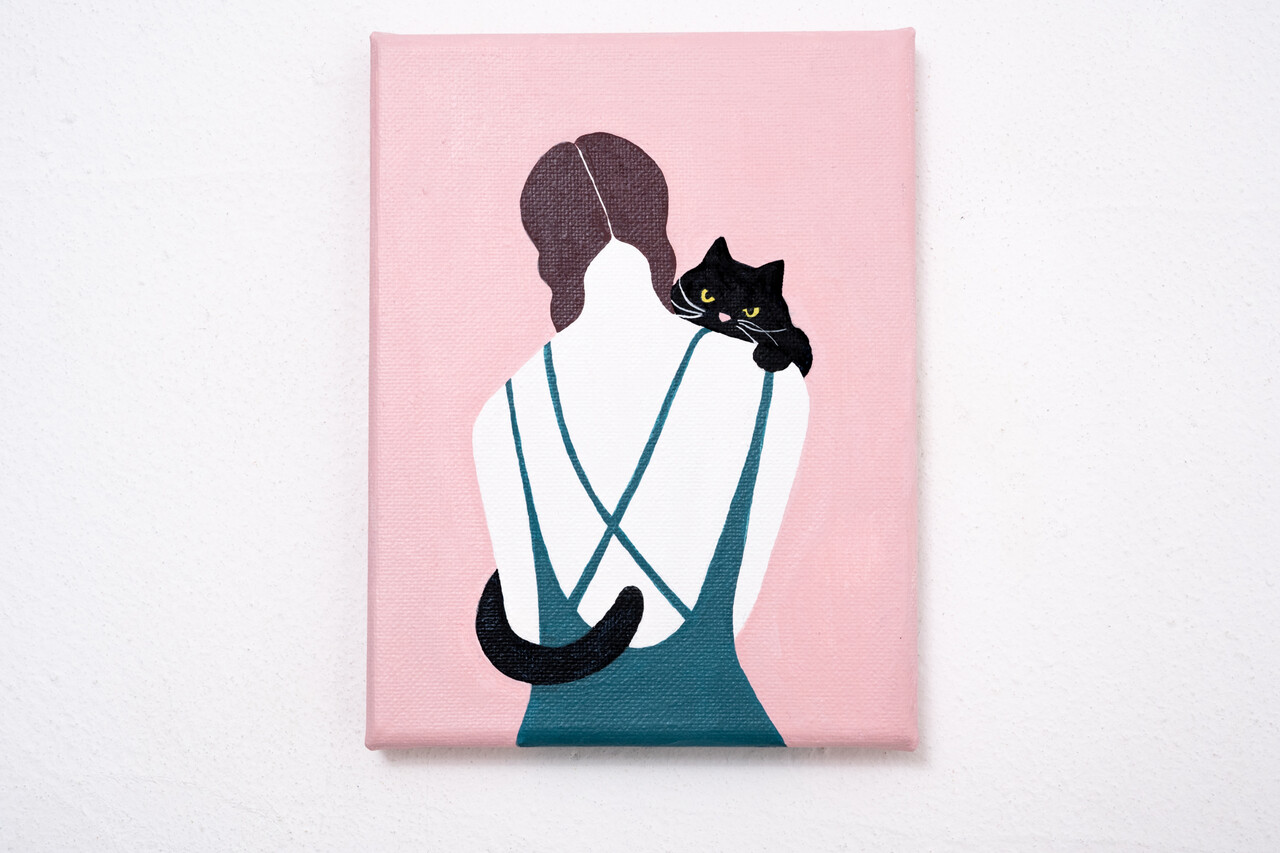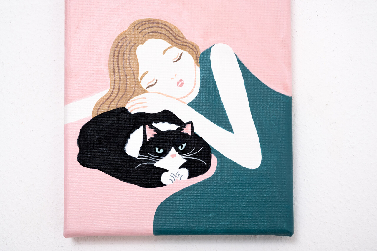 というのがきっかけで、猫と女の子の絵を3枚描きました。