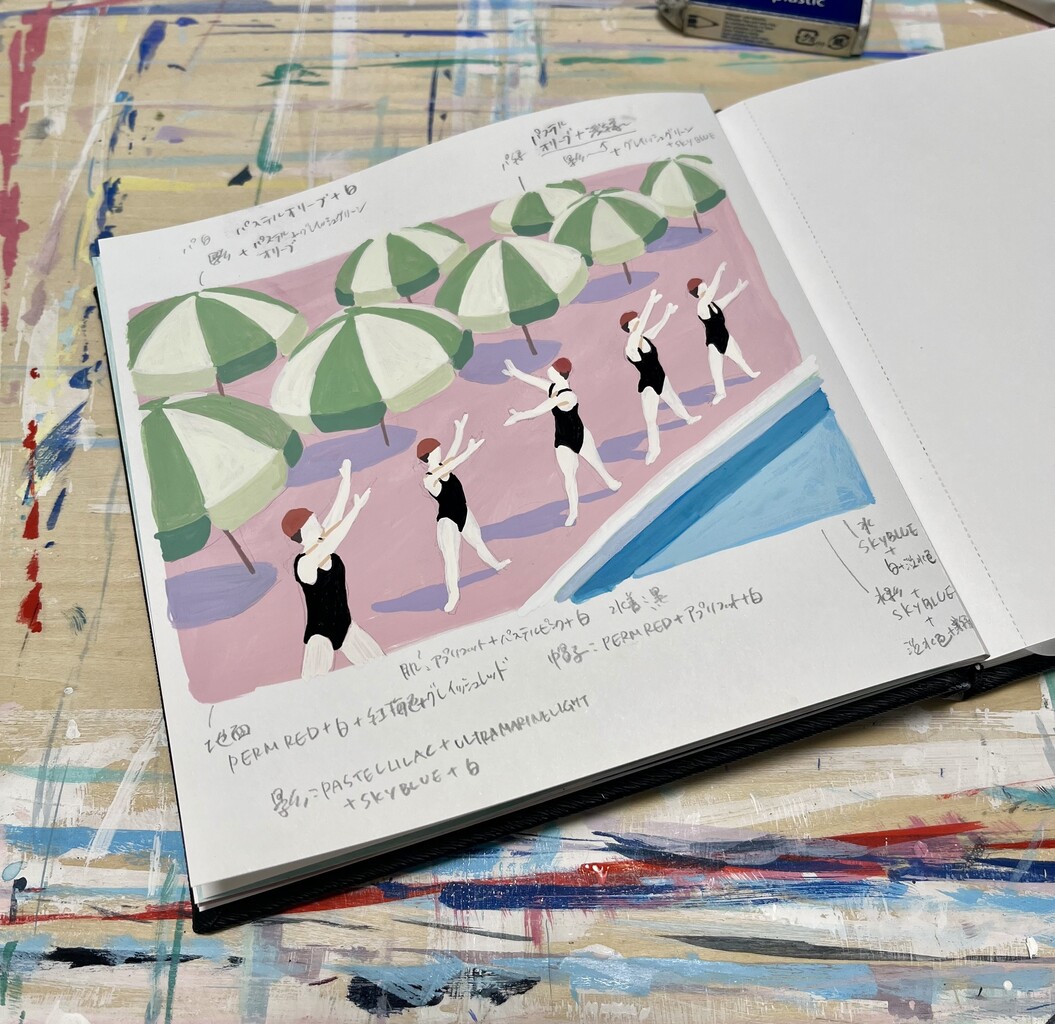 スケッチブックを買ったのですが、事前に色を作って色の構成をメモしておいてから本番の絵を描くという工程にしてみました。