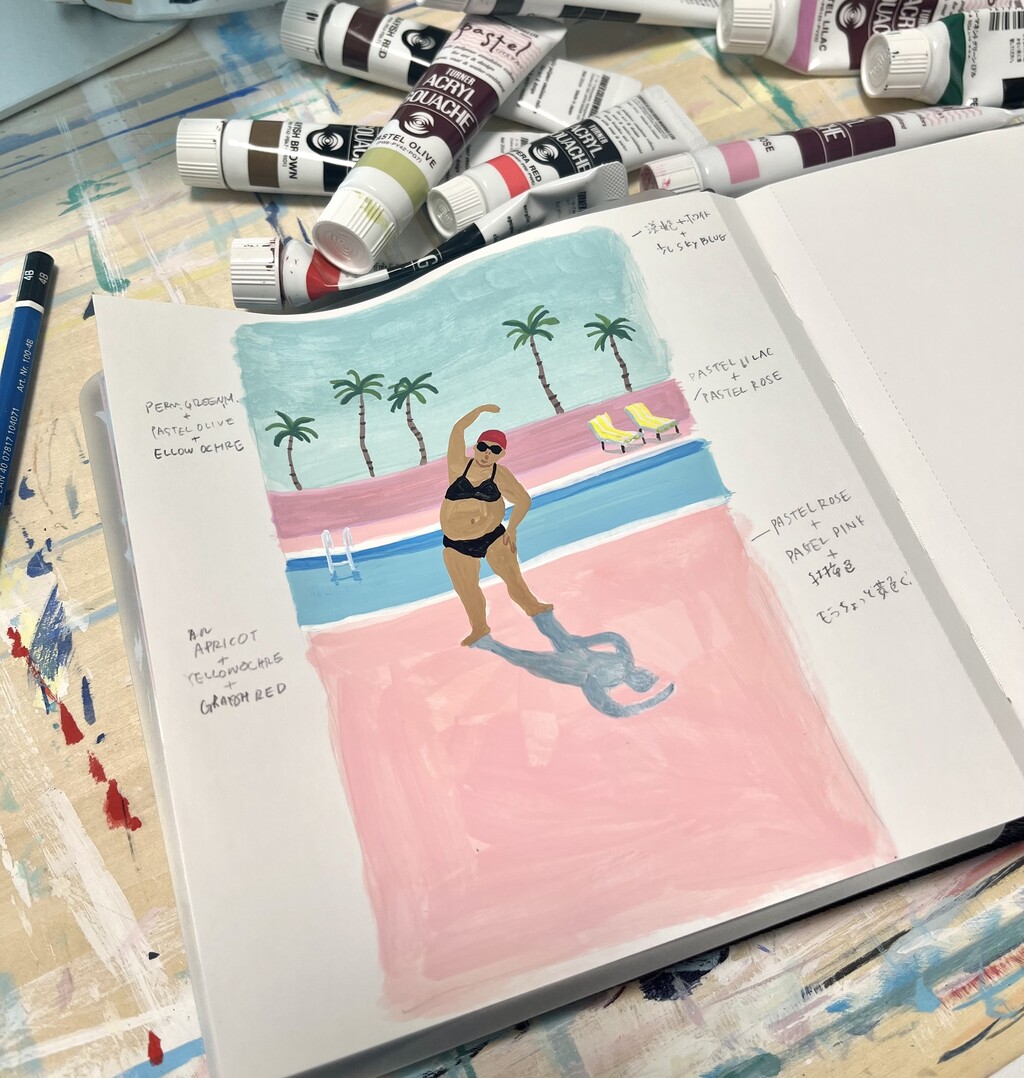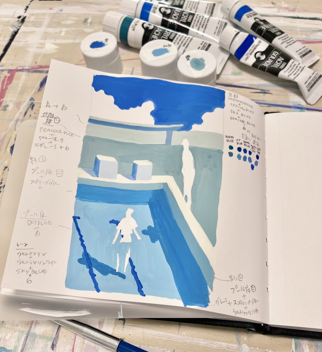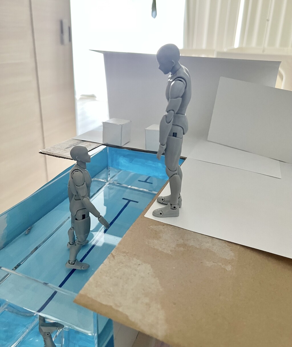プールの絵を描くために簡易的な模型を作ってみたりもしました。