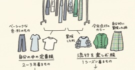 こんにちは、おふみです。 もう10年近く、1シーズン10着前後で過ごしています。 このうち半分は定番を、もう半分は流行を追ったアイテムを持ちたいなと思っています。(年によって比率は変わることがありますが)おふみ『暮らしを見直す10分間』(大和書房)より 一言でミ